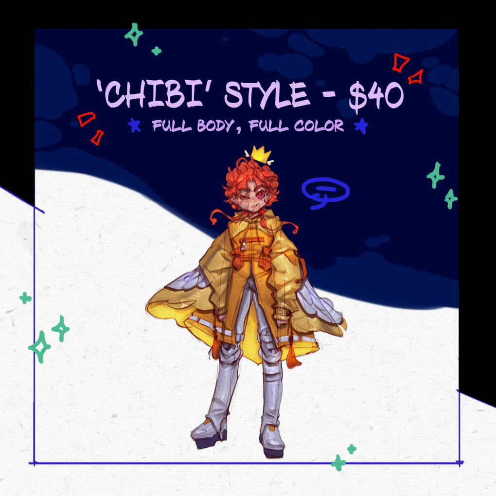 (background included; +$20 for each additional character)'Chibi' style - $40